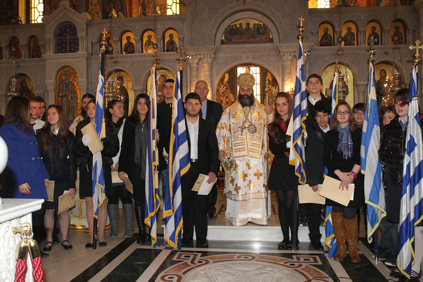 Μετά το τέλος της Θείας Λειτουργίας και επί τη ευκαιρία της εορτής της Παιδείας και των Γραμμάτων ο Σεβασμιώτατος Ποιμενάρχης μας, ομίλησε για το νόημα της εορτής των Τριών Ιεραρχών τονίζοντας ότι «Οι τρείς Ιεράρχες συν τοις άλλοις αποτελούν για τους νέους μας αλλα και για κάθε πιστό τα φωτεινά εκείνα πρότυπα αγιότητος και σοφίας που μας οδηγούν εις το κατ΄εξοχήν αιώνιον πρότυπον, τον Κύριον ημών Ιησούν Χριστόν».