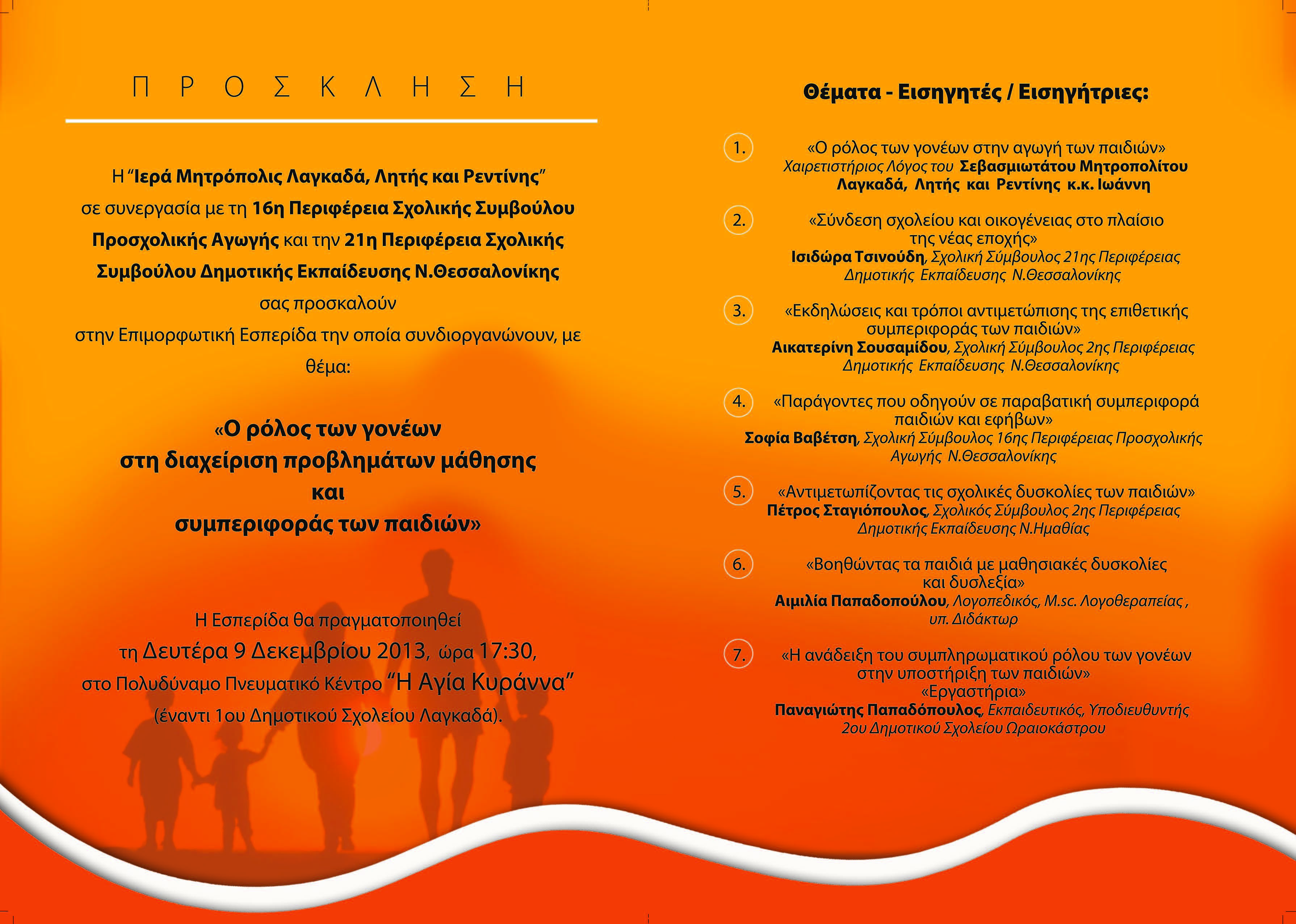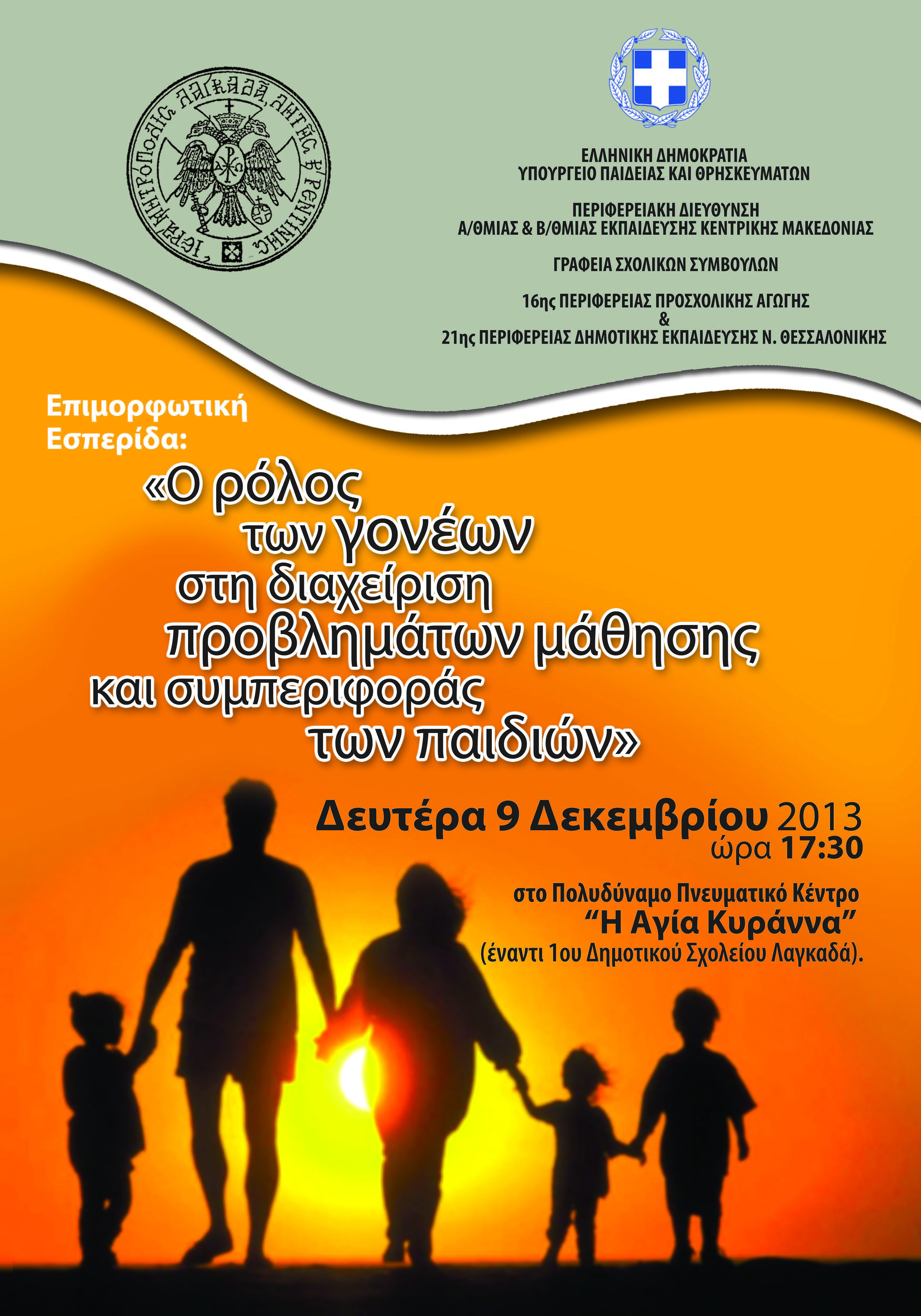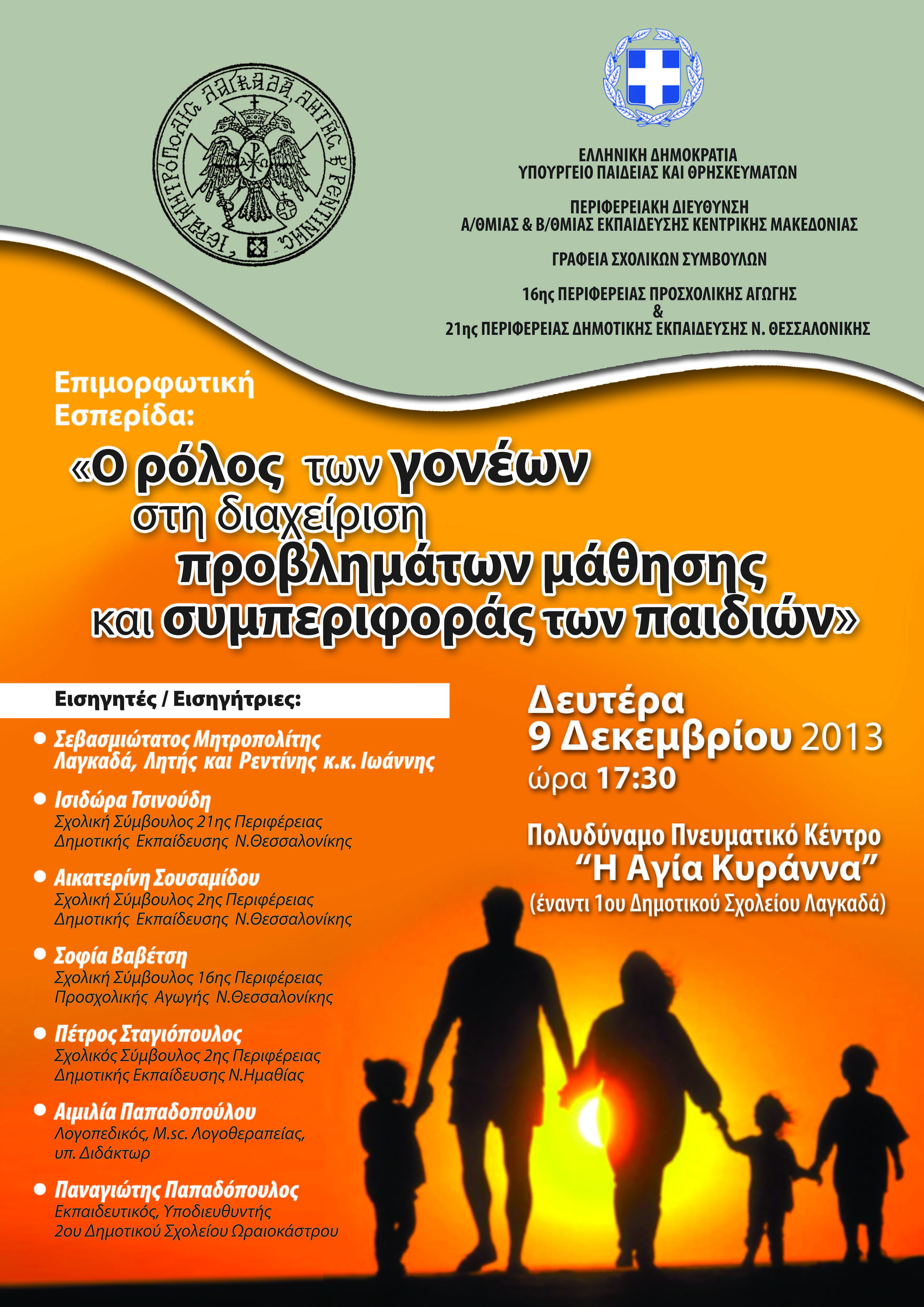 (09.12.2013) Εσπερίδα με θέμα : Ο ρόλος των γονέων στη διαχείριση προβλημάτων μάθησης και συμπεριφοράς των παιδιών