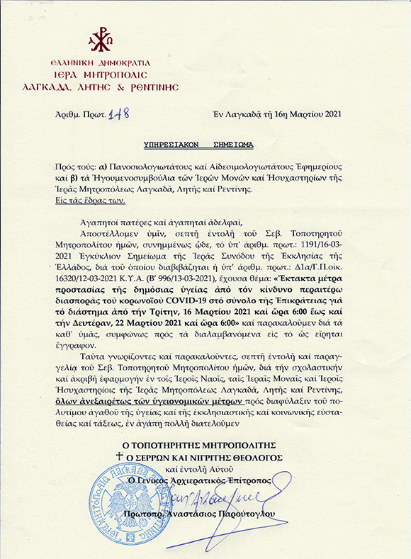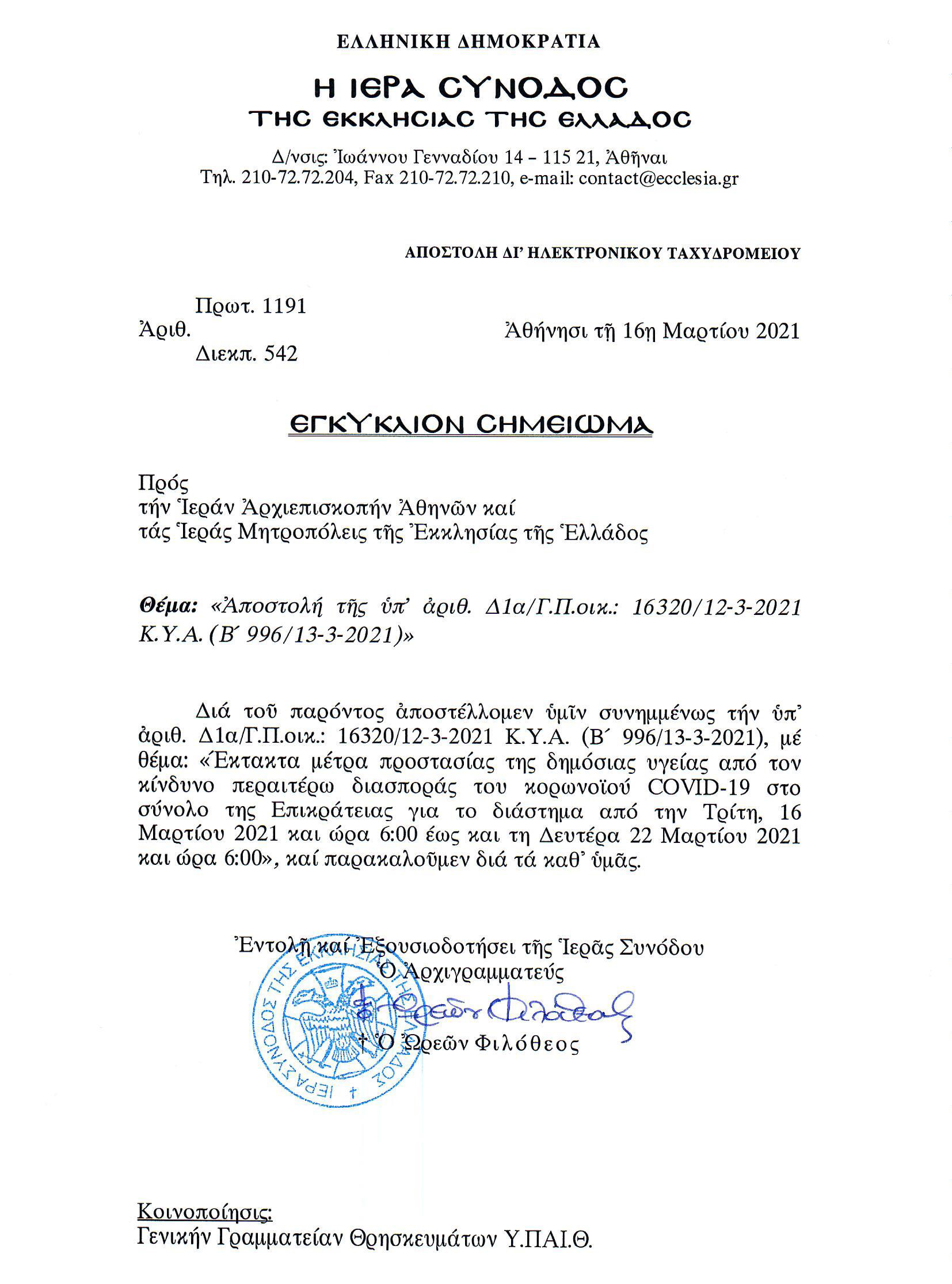 (16-22.03.21) ΕΚΤΑΚΤΑ ΜΕΤΡΑ ΔΙΑΣΠΟΡΑΣ COVID - 19